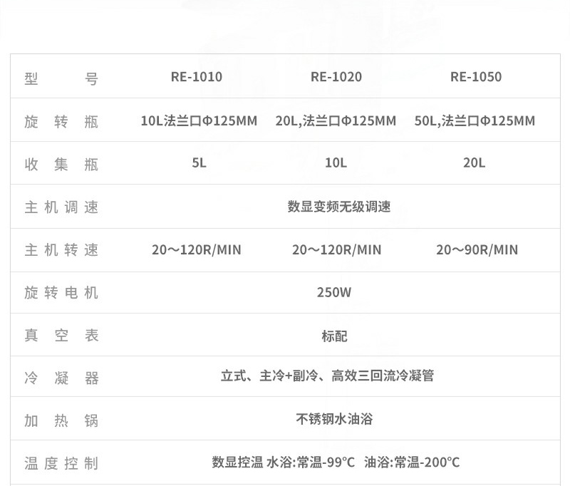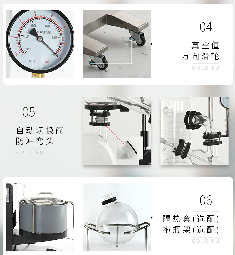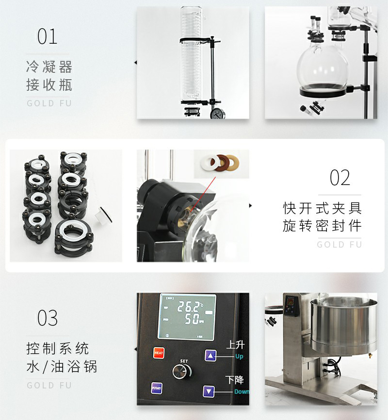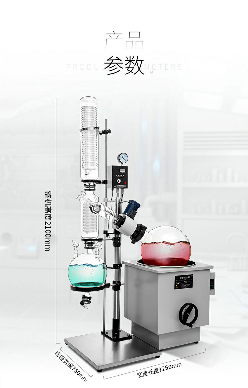 旋轉蒸發器主要用于醫藥、化工和生物制藥等行業的濃縮、結晶、干燥、分離及溶媒回收。其原理為:在真空條件下,恒溫加熱,使旋轉瓶恒速旋轉,物料在瓶壁形成大面積薄膜,高效蒸發。溶媒蒸發經高效玻璃冷凝器冷卻,回收于發集瓶中,大大提高蒸發效率。特別適用于對高溫容易分解變性的生物制品的濃縮提純。